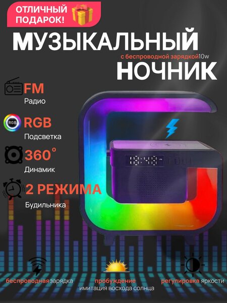 ▎Описание продукта Название: Беспроводная зарядная станция с функцией Bluetooth и светильником ▎Технические характеристики: 1. Входное напряжение: 12 В / 2,5 А 2. Беспроводной выход: 10 Вт 3. Имя Bluetooth: G6 4. Мощность звука Bluetooth: 5 Вт 5. Материал: АБС-пластик 6. Цвет продукта: Черный 7. Режим освещения: Возможность менять различные осветительные режимы 8. Версия Bluetooth: 5.0 9. Расстояние передачи: 5-10 м 10. Эффективность зарядки: 75% 11. Рабочая частота: 50 Гц - 20 кГц 12. Емкость батареи кнопки: (информация отсутствует) 13. Вес нетто: 350 г 14. Размер продукта: 155 x 55 x 160 мм ▎Функции: • Беспроводная зарядка мощностью 10 Вт. • Атмосферная лампа и прикроватный светильник с ослепительным эффектом. • Аудио через Bluetooth, с возможностью воспроизведения через AUX, TF-карту и U-диск. • Динамики: Встроенные, 360-градусный объемный звук • Поддержка FM-радио. • Переключение цветовых режимов светодиода с помощью кнопки «M». • Изменение света в ритме музыки: Свет адаптируется к музыкальным частотам, создавая атмосферу. ▎Комплектация: • 1 x Беспроводная зарядная станция • 1 x Зарядный кабель ▎Примечания: • Для работы светодиодного светильника рекомендуется использовать адаптер питания QC3.0. • Устройство совместимо со всеми телефонами, поддерживающими беспроводную зарядку. • Для быстрой зарядки и одновременного использования всех функций рекомендуется использовать адаптер питания QC3.0. Этот современный прибор сочетает в себе функции освещения, музыки и беспроводной зарядки, что делает его идеальным дополнением для спальни или рабочего пространства. Стильный дизайн и множество функций помогут создать комфортную атмосферу и улучшить качество сна.
