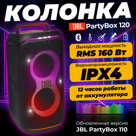 Громко, басисто, для улицы/дачи/частного дома топ, версия 320 будет как понимаю мощнее, кому нужна именно громкость лучше присмотреть ее, так как версия 160 не супер громкая. Выкрутить на максимум - уши минус, но все таки на улице будет ощутимая разница у них Недостатки:Только один заметил по официальному приложению JBL PartyBox - нельзя создать собственные цветовые пресеты и "волны" для световых индикаторов на колонке. Только парочку штук созданных разработчиком и все. Даже цвет сменить получится не на всех пресетах - будет 1 ваш цвет и второй указанный в пресете. Также из кабелей к сожалению только зарядный - ни AUX, ни переходничков, мелочей никаких, чисто колонка и зарядка. Но это политика JBL уже. В остальном колонка огонь. Комментарий:Полностью оригинал, пробивается через JBL + определяется устройствами с нулевой как именно бумбокс JBL (отдельный интерфейс у телефонов) и соответственно коннектится спокойно к приложению. Упакована тоже достойно. ПЕРЕД ПЕРВЫМ ИСПОЛЬЗОВАНИЕМ НЕОБХОДИМО ЗАРЯДИТЬ НА 100% - об этом пишет сам производитель. При первом включении споткнулся об это и вместо заявленных 12 часов работы колонка со 100% проработала от силы часа 2. Дальше после полной зарядки стабильно работает в зависимости от того используете подсветку и режим Bassboost (Bb) или нет + играет роль подключение Bluetooth. Максимально выжимал из нее 9,5 часов спустя 2 недели после покупки - с учетом подключения через кабель AUX, отключенный Bb и отключенную подсветку. Заявленные продавцом 12 часов вряд ли тянет, да и не смотрел что пишет производитель по батарейке если честно. Но комплекты акумов есть на площадке так же.