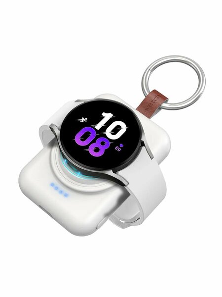 【Зарядное устройство для часов Samsung】 Портативное зарядное устройство совместимо с часами Samsung: Watch 8 / 8 Classic / Ultra / 7 / 6 / 6 Classic / 5 / 5 Pro / 4 / 4 Classic / 3, Active 2 / 1. (Внимание: Не совместимо с другими моделями часов). 【Портативный Power Bank для Galaxy Watch】 Компактный и легкий беспроводной Power Bank для часов Galaxy со встроенным аккумулятором 1800 мАч. Встроенное крепление-карабин позволяет легко носить его с собой на сумке или рюкзаке. Идеально помещается в карман, что делает его чрезвычайно удобным для путешествий. 【Быстрая зарядка для часов Samsung】 Наше беспроводное зарядное устройство обеспечивает быструю зарядку: полная зарядка часов Samsung занимает всего 2-2.5 часа. Зарядка самого Power Bank занимает примерно 2 часа. Для начала беспроводной зарядки просто нажмите боковую кнопку один раз, для остановки — нажмите дважды. Четыре светодиодных индикатора позволяют легко проверить текущий уровень заряда (0-25%-50%-75%-100%). 【Магнитная зарядка】 Зарядное устройство оснащено мощным магнитным модулем, который надежно фиксирует часы в центре зарядной площадки, предотвращая соскальзывание. Для начала зарядки просто поместите часы на магнит — зарядка начнется автоматически. 【Комплектация】 В комплект входит: 1* портативное зарядное устройство для часов Samsung; 1* кабель для зарядки USB-C — USB-A; 1* руководство пользователя.