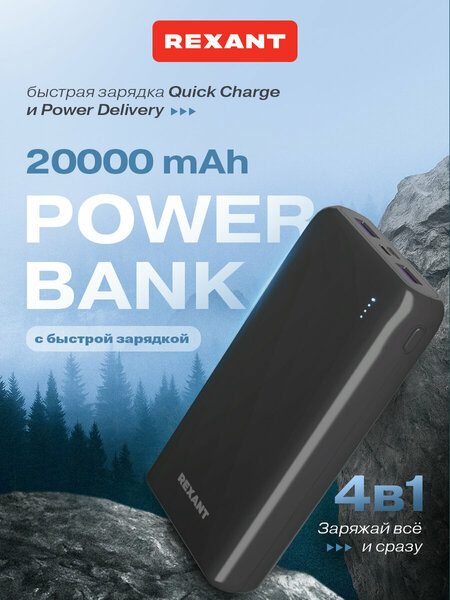 Портативное зарядное устройство REXANT (Power Bank) предназначено для зарядки мобильных устройств в любом месте и в любое время, когда нет доступа к электросети. Устройство оснащено входными разъемами 2 USB, 1 Type-C и 1 micro-USB, что позволяет заряжать Power Bank от различных источников питания. Поддержка стандартов быстрой зарядки Quick Charge и Power Delivery обеспечивает возможность зарядки совместимых устройств в максимально короткие сроки. Power Bank имеет компактные размеры, что делает его удобным для хранения и транспортировки. Его можно брать с собой в путешествия, деловые поездки, походы на природу и т. д.
