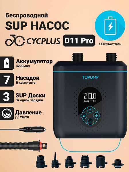 Молниеносное надувание: Благодаря трем режимам надувания, мощному мотору и двухступенчатой накачке, насос Cycplus D11 Pro надувает 10,5' SUP-доску до 12 PSI за 6 минут и до 15 PSI за 7-7,5 минут, что на 100% быстрее, чем другие насосы!