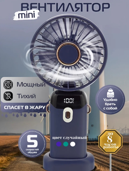 Портативный мини-вентилятор с 5 режимами работы, ремешком и функцией подставки для телефона Представляем вашему вниманию компактный мини-вентилятор, который станет вашим надежным спутником в жаркие дни! Этот стильный и функциональный гаджет сочетает в себе удобство, практичность и современный дизайн. Идеально подходит для использования дома, в офисе, на прогулке или в путешествии. Основные характеристики: Длительная работа: Вентилятор работает до 8 часов на одном заряде, что позволяет вам наслаждаться прохладой в течение всего дня. 5 режимов скорости: Вы можете легко регулировать интенсивность airflow, выбирая подходящий режим — от легкого бриза до мощного потока воздуха. Компактный и легкий: Небольшие размеры и малый вес делают вентилятор удобным для переноски в сумке или рюкзаке. Ремешок для переноски: В комплекте идет практичный ремешок, который позволяет носить вентилятор на руке или закрепить его на сумке. Подставка для телефона: Уникальная конструкция позволяет использовать вентилятор как подставку для смартфона. Теперь вы можете смотреть видео, читать или работать, не держа телефон в руках. Универсальное питание: Заряжается через USB, что делает его совместимым с power bank, ноутбуком или любым другим устройством с USB-портом. Ваше спасение в жару.
