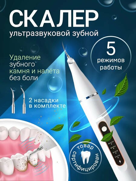 Скалер, как электрическая зубная щетка и ирригатор относится к приборам по уходу за полостью рта. У каждого из этих инструментов своя задача. Принцип ультразвуковых колебаний используемый в аппарате позволяет легко очистить зубную эмаль от въевшегося налета , а межзубные каналы от камня. Вам не стоит бояться, что ненароком можно повредить десну или зубы: скалер не срабатывает на мягких тканях, а для бережной чистки у него имеется 5 режимов работы. Вы легко подберете удобный именно Вам. Применение данного инструмента существенно сэкономит ваш бюджет на походах к стоматологу. При этом он подходит не только для людей, но и для домашних питомцев – кошек и собак. Перед началом работы убедитесь, что прибор полностью заряжен. Включение осуществляется трехсекундным зажатием кнопки питания. Если индикатор заряда мигает, значит уровень зарядки низкий. Полная зарядка составляет 2 часа. Двойной щелчок по кнопке питания включает подсветку. Выбор режима работы так же идет с помощью этой кнопки. Установка и замена насадки на ультразвуковой скалер производится когда он выключен специальным ключом. Насадка с более широким наконечником предназначена для чистки эмали, а с более узким для удаления зубного камня. Данная модель предназначена для домашнего использования. Она портативная, удобно брать с собой в дорогу. USB провод позволяет с легкостью зарядить ее в любом месте где есть электричество. Влагоустойчивость, небольшой вес, удобная форма и простота использования делают скалер незаменимым помощником в заботе о здоровье Ваших зубов и десен. Поддерживайте Вашу улыбку красивой! Приближается Новый год, ультразвуковой скалер может стать отличным подарком для Ваших близких. Подарите свою заботу и внимание родным для Вас людям!
