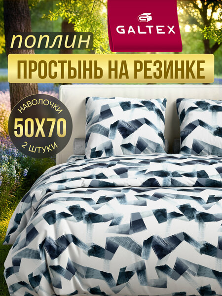 2 спальное (2 нав. 50х70) поплин, хлопок с простыней на резинке galtex грэй серый