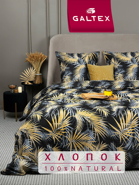2 спальное (евро простыня) galtex комфорт бязь тропикана, вид черный