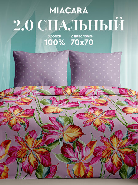 Постельное белье 2 спальное Mia Cara бязь - гигиеничный и экологический чистый 100% хлопок. Комплект постельного белья 2х спальный от бренда Mia Cara станет достойным дополнением в вашей спальни, постельное белье сочетает в себе комфорт, красоту и отменное качество. Постельное белье 2 спальное бязь Mia Cara произведено из 100% хлопка, особое плетение которое обеспечивает неповторимую гладкость и нежность, приятное для прикосновения кожи. В процессе использования не появляется заломов, а все дизайны сохранят насыщенность цветом на годы, несмотря на многократность стирок. Постельное бельё отлично стирается, выдерживая более сотни стирок, сохраняя размеры, цвета и рисунок. Поверхность бязи гладкая, но матовая. Чтобы белье постельное 2 спальное бязь прослужил долгие годы, за ним нужно правильно ухаживать. Стирать постельное из бязи следует при температуре воды от 30 до 40 градусов. Для сохранения яркости расцветки изделия нужно вывернуть наизнанку. Сушить белье постельное обычным способом. Допускается машинная сушка. Чтобы постельный комплект 2 спальный было легко гладить, не следует его сильно пересушивать, лучше оставить немного влажными. Двуспальное постельное белье комплектация: