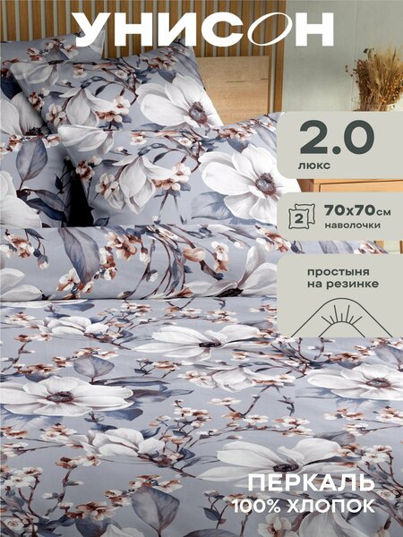 Постельное белье 2 спальное люкс Унисон перкаль (100% хлопок) - это премиальная ткань полотняного переплетения из тонкой хлопковой пряжи, плотная, легкая и деликатная на ощупь, очень комфортная для сна. Постельное белье Унисон коллекция перкаль собрана из актуальных трендовых дизайнов различных направлений. Постельное белье 2 спальное на резинке Унисон впишется в любой интерьер Вашей спальни или станет прекрасным подарком женщине, маме, подруге, девушке на любой праздник: День Рождения, 8 Марта, Новый год, на свадьбу Комплект постельного белья 2х спальный уход: