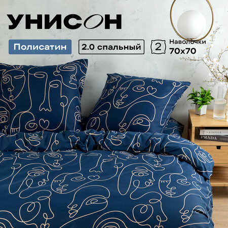 Комплект постельного белья 2х спальный от Унисон, нежнейший как шёлк полисатин - настоящая жемчужина в оформлении спальни. Мягкий блеск под лучами солнца придаёт ткани особое благородство, а гладкость и нежность понравится всем любителям сатинового постельного белья. Полисатин, как понятно из названия, не хлопковый материал. Однако это нисколько не умаляет тактильной приятности ткани и её эстетического вида. Полисатин очень долговечный материал, в среднем он выдерживает в два раза больше стирок, чем его хлопковый собрат. Он не теряет форму и надолго сохраняет первоначальный внешний вид. Постельное белье 2 спальное из полисатина отличается высокой плотностью, оно не мнётся и не истирается. Благодаря волокнам полиэстера в составе краски не теряют своей насыщенности со временем, а рисунок остаётся исключительно чётким. Ещё одной особенностью полисатина является то, что он не требует глажки. Однако стирка допускается только при температуре не выше 40 градусов в режиме деликатной стирки. Если нарушить температурный режим, материал становится подвержен образованию катышек и усадке. Нежные цветы или строгая геометрия, изящные орнаменты или лёгкие ботанические рисунки – в коллекции полисатина Унисон каждый найдет дизайн для себя. ---------------------------------------------------------------------------------- Комплект включает в себя ▪ Пододеяльник размером 175х215 см, ▪ Простынь размером 200х220 см, ▪ Две наволочки размером 70х70 см. ▪ Плотность ткани составляет 85 г/м2. ▪ Произведено в России, в Ивановской области. ▪ Застежка пододеяльника выполнена в виде прорези, что делает его использование еще более удобным. ----------------------------------------------------------------------------------