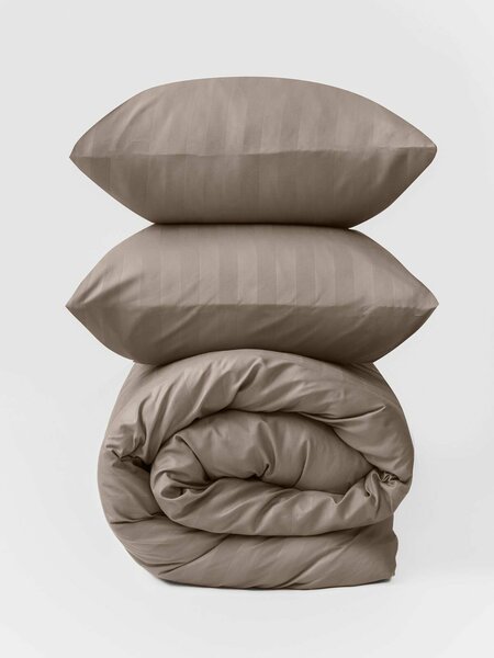 Представляем вашему вниманию роскошное двуспальное постельное белье с евро простыней, изготовленное из качественного полисатина, который внешне напоминает мягкий и блестящий искусственный шелк. Ткань обладает плотностью 95 г/кв. м, что обеспечивает прочность и долговечность комплекта. Универсальность подчеркивается его нейтральной цветовой гаммой и подходящим для всех членов семьи дизайном. Производство расположено в Узбекистане, стране с богатыми традициями текстильного дела. Постельное белье 2 спальное включает в себя один пододеяльник, одну простыню стандартного евро-размера и две наволочки. Наволочки имеют удобный клапан для вставки подушки, а пододеяльник снабжен практичной молнией, облегчающей процесс заправки. Принт представлен в виде классических полосок страйп и однотонных элементов, что придает изделию стильный и современный вид. Окраска выполнена в спокойных и приятных глазу оттенках, гармонирующих с любым интерьером спальни. Рекомендованный режим ухода — деликатная стирка при температуре не выше 30°C. Этот режим позволит надолго сохранить первоначальные свойства ткани и яркость красок. Размеры изделий соответствуют стандартам двуспального комплекта с простыней евро-размера: пододеяльник — 175x215 см, простыня — 220x240 см, наволочки — 70x70 см. Данный комплект постельного белья станет идеальным выбором для тех, кто ищет сочетание высокого качества, комфорта и стиля в своем доме.