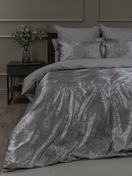 комплект производится из двух видов тканей – верхняя сторона (лицевая сторона пододеяльника и декоративных наволочек) выполнена из жаккардовой ткани (65% хлопок, 35% полиэстер); внутренняя часть (простыня, оборотная сторона пододеяльника, большие наволочки и обратная сторона декоративных наволочек) - из сатина (100% хлопок)