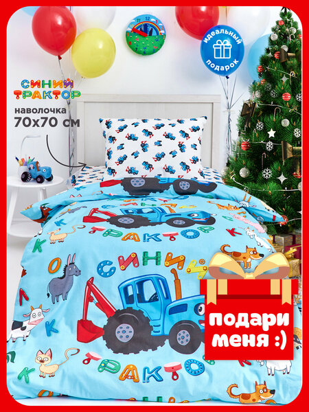 Уютная и милая детская постель — мечта каждого ребенка. А с суперским постельным бельем, которое соответствует увлечениям ваших детей, вы сможете их по-настоящему осчастливить. Детский комплект с Синим Трактором — лучший подарок для любителей мультфильма. Главный герой в окружении животных органично смотрится на светло-голубом пододеяльнике: в комплект также входят белые простыни и наволочки с тракторами. Радостный и милый Синий Трактор, который путешествует по полям, делает нежное постельное белье особенно красивым. А изображенные на пододеяльнике веселые животные, песенки про которых знает каждый ребенок, делают комплект идеальным вариантом для приятного отдыха! Бренд непоседа предлагает качественное постельное белье 1,5 спальное с интересными рисунками и дизайнами, от которых ваш ребенок будет в восторге! Такой комплект на одноместную кровать — просто идеальный вариант на лето или зиму. Он точно понравится вашему ребенку: как мальчику, так и девочке. Хлопковый набор постельного односпального белья подойдет девочкам и мальчикам, которые спят на кровати-полуторке. Износостойкий комплект можно использовать и дома, и на даче. Полутороспальный комплект для ребенка состоит из пододеяльника 143х215 см, простыни 214х150 см и наволочки 70х70 см. Он подойдет на кровать с матрасом 80х180, 90х180, 90х190, а также 80х200 см, 90х200 см. Полуторное постельное белье из нежнейшего поплина (100% хлопок) — лучший подарок ребенку. Полутороспальный хб набор отличается мягкостью и долго держит цвет, поэтому ваше чадо будет с радостью засыпать каждую ночь в детской комнате. Мягкий и нежный КПБ подарит вашим детям, а также крестнику и крестнице сказочные сны. Прикольное постельное белье 1.5 спальное стирается в машинке на деликатном режиме (40С): перед тем, как положить его в машинку, выверните комплект наизнанку и используйте щадящие средства для стирки. 1,5-спальное постельное белье с красивым дизайном станет отличным подарком для детей. Дети — внук и внучка, сын и дочка — будут с удовольствием отдыхать в спальне на таком односпальном комплекте. Сестра и брат, а также племянник и племянница порадуются такому подарку на день рождения или новоселье. Наше постельное белье 1,5 спальное и другие товары, сделанные в Иваново, подарят вашим детям счастье! Они отвечают всем необходимым стандартам безопасности ГОСТ. Обратите внимание, что полутороспальное постельное белье для дочки или сына является невозвратным товаром. Просим проверять спальные комплекты и постельные принадлежности на целостность, не покидая пункт выдачи. Приятных покупок и пусть Ивановский текстиль для дома всегда радует вас. непоседа — любимые персонажи всегда рядом.