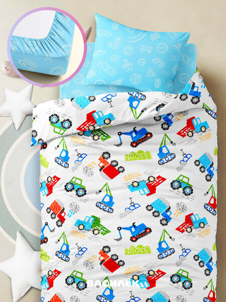 Пододеяльник 112х146 см - 1шт, простыня на резинке 80х160х25 см - 1шт, наволочка 40х60 см - 1шт