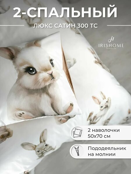 Постельное белье 2 спальное создано нашей командой, чтобы ваш сон был сладким и комфортным! Комплект постельного белья на двуспальную кровать выполнен из египетского хлопка 100% с плетением сатин плотностью 300 ТС. Наш сатин красивый и плотный с легким шелковым блеском. Мы используем ткани с фабрик Турции, печатаем принт с зайцами кроликами, и отшиваем изделия на собственном производстве в России. У нас вы найдете постельные принадлежности не только для взрослых, но и для девочки и мальчика подростка. Двуспальная постель подойдет на спальное место 160х200 и меньшего размера в спальную или детскую комнату. Комплектация: один пододеяльник на молнии 175х210 см, одна европростыня 220х240 см, две наволочки 50х70 см. Милые и мягкие вещи для дома с эстетичным принтом зайчики или кролик создадут уют в вашем доме. Набор кпб упакован в плотную красивую коробку с фирменным дизайном и подойдет как подарок для женщин, мужчин и детей. Вы можете использовать его одинаково комфортно зимой и летом. Модное и теплое оно хорошо впитывает влагу во время сна, приятно на ощупь, гипоаллергенное. В нашем ассортименте однотонные компаньоны различных оттенков сочетаются с темными и светлыми рисунками. IRISHOME создает премиум коллекции из люксовых тканей, чтобы вы могли приобрести брендовое белье и порадовать себя и своих близких. Рекомендации по уходу: стирка при температуре 30 градусов, не смешивать с другими цветами и типами тканей. Использовать жидкие средства для стирки без отбеливающего эффекта. Предварительно изделия вывернуть наизнанку. *Обращаем ваше внимание, что оттенок комплекта может отличаться из-за разницы цветопередачи мониторов.