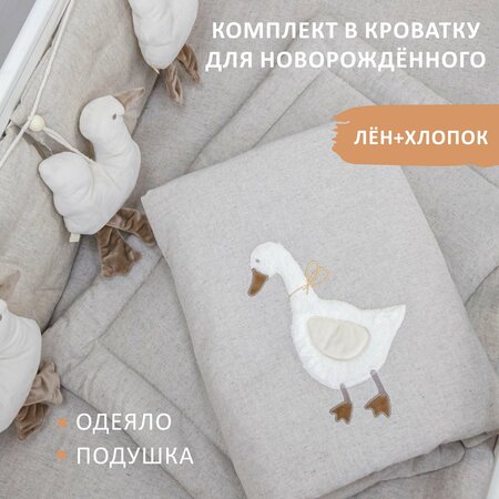 Комплект постельных принадлежностей для новорожденного ребенка: одеяло 70х100 см и подушка 40х60 см с наполнителем синтепон. Этот набор выполнен из хлопка и льна специально для комфортного сна ребенка. Постельные принадлежности предназначены для использования в кроватках новорожденных малышей. Однотонное спальное белье выдержит много стирок, устойчив к катышкам, впитывает влагу и дышит. Комплект белья не обязательно гладить, так как он отлично держит форму после стирок. Одеяло можно использовать как плед или покрывало на кровать. Подарочный комплект для младенца подходит для использования в разные сезоны, а особенно комплект будет актуален, когда зима, осень или холодная весна. Хлопковое зимнее одеялко обеспечит тепло в холодное время года и благоприятную температуру в теплую погоду. Подушечка подарит малышу еще больше комфорта и поддержки во время сна. Этот набор постельного белья прекрасно сочетается как с детской комнатой для мальчика или девочки, так и с любым интерьером вашего дома. Мягкое декоративное одеяльце и подушка выполнены из натурального хлопка и льна, что делает их приятными на ощупь и позволяет малышу комфортно отдыхать. Односпальное всесезонное белье для новорожденных выполнено с особым вниманием к деталям, чтобы ваш малыш чувствовал себя в безопасности. Тонкое облегченное одеяло с принтом в виде мишки обязательно понравится каждому ребенку. Комплект постельного белья создан специально для детей первых месяцев жизни и отвечает всем требованиям комфорта и качества. Используя этот утепленный набор зимой, вы обеспечите своего младенца легким и теплым сном в любое время года. Комплект от бренда Kiriya kids (Кирия Кидс) идеально подходит в качестве подарка на выписку.