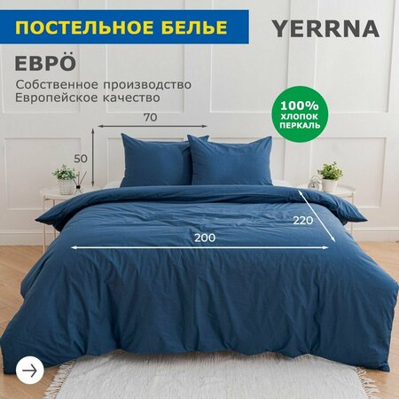 Вы ждали? Теперь подойдет всем - мы расширили размерный ряд! Европейское качество российского производителя теперь доступно в пяти размерах. Этот комплект состоит из пододеяльника на молнии 200*220 см и двумя наволочками 50*70 см. После стирки размеры не поменяются, потому что есть запас на усадку! Плотная и мягкая ткань из 100% хлопка выдержит любые нагрузки, в ней 152 нити на кв. дюйм и ее зовут перкаль. Не забудьте выбрать простынь в каталоге, в цвет комплекта или другого оттенка, на резинке или классическую, а лучше несколько! Наша коллекция вам уже нравится? - ее зовут YERRNA. Обратите внимание, что в полукомплекты бренда YERRNA не входит простыня. Такое наполнение КПБ становится популярным во всем мире, поскольку дает возможность выбрать наиболее подходящую для вашего матраса простыню. Коллекция YERRNA - конструктор, здесь можно не бояться ошибиться с выбором цвета, рисунки гармонично сочетаются с однотонными товарами бренда. К полуторному комплекту рекомендуем простыни на резинке в размерах 160*200, 180*200 или классическую простыню 240*260 Постельное белье евро YERRNA произведено на предприятии полного цикла Шуйские ситцы, из 100% хлопка в лучших традициях ивановского текстиля. YERRNA - стильное и эстетичное пастельное белье для вашего дома и спальни. Любимые привычки менять не нужно, нужно только подобрать размер!