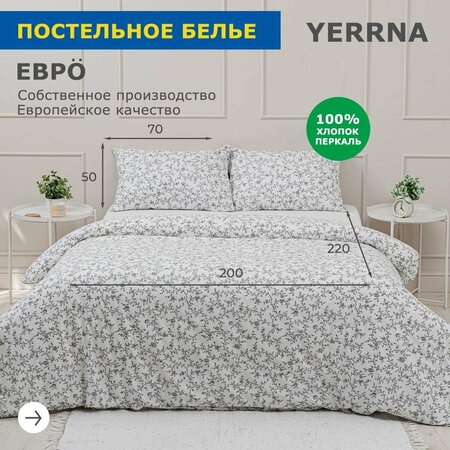 Вы ждали? Теперь подойдет всем - мы расширили размерный ряд! Европейское качество российского производителя теперь доступно в пяти размерах. Этот комплект состоит из пододеяльника на молнии 200*220 см и двумя наволочками 50*70 см. После стирки размеры не поменяются, потому что есть запас на усадку! Плотная и мягкая ткань из 100% хлопка выдержит любые нагрузки, в ней 152 нити на кв. дюйм и ее зовут перкаль. Не забудьте выбрать простынь в каталоге, в цвет комплекта или другого оттенка, на резинке или классическую, а лучше несколько! Наша коллекция вам уже нравится? - ее зовут YERRNA. Обратите внимание, что в полукомплекты бренда YERRNA не входит простыня. Такое наполнение КПБ становится популярным во всем мире, поскольку дает возможность выбрать наиболее подходящую для вашего матраса простыню. Коллекция YERRNA - конструктор, здесь можно не бояться ошибиться с выбором цвета, рисунки гармонично сочетаются с однотонными товарами бренда. К полуторному комплекту рекомендуем простыни на резинке в размерах 160*200, 180*200 или классическую простыню 240*260 Постельное белье евро YERRNA произведено на предприятии полного цикла Шуйские ситцы, из 100% хлопка в лучших традициях ивановского текстиля. YERRNA - стильное и эстетичное пастельное белье для вашего дома и спальни. Любимые привычки менять не нужно, нужно только подобрать размер! Уважаемые покупатели, постельное белье - невозвратный товар, убедительная просьба тщательно проверять комплекты до проведения оплаты на ПВЗ.