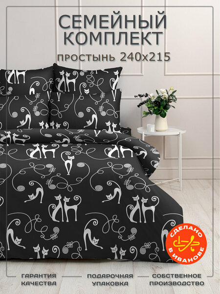 Оживите свою спальню семейным постельным бельем класса люкс с 2 полуторными пододеяльниками от бренда "Бояртекс"! Декорируйте ваш интерьер с помощью нашего нежного и элегантного постельного белья. Наша продукция изготавливается из высококачественных материалов, чтобы удовлетворить даже самых требовательных покупателей. Наслаждайтесь комфортом и уютом каждую ночь благодаря нашим семейным наборам постельного белья. Наши товары идеально подходят для зимнего и летнего сезона. В зимнее время они согреют вас теплом, а в летние месяцы подарят вам прохладу и свежесть. Темное или светлое постельное белье в унисон с декором вашей спальной комнаты создаст элегантный и стильный образ. Наслаждайтесь мягкостью и комфортом в ночные часы благодаря плотной ткани полисатин и высокому качеству изделий. Полисатин - это полотно сатинового плетения на базе полиэстера. Полисатин - ткани нового поколения. Это тончайшее нежное микроволокно с пич-эффектом. Выразительные, уникальные и реалистичные дизайны, подойдут к любому интерьеру спальни на двуспальную кровать для взрослых, подростков и детей, если вы стремитесь попробовать что-то более авантюрное, оживить помещение ярким акцентом. Ткань по мягкости близка к хлопку и имеет гладкую, шелковистую и блестящую поверхность, она легкая, довольно плотная, быстросохнущая. Комплект постельного белья семейный или дуэт состоит из 5 предметов: наволочки размером 70х70 см 2 штуки; пододеяльник 145х215 см 2 штуки; евро простынь без резинки 240х215 см 1 штука. Полиэстер легкий, долговечный и устойчивый к различным повреждениям. Размеры постельных принадлежностей являются стандартом, при этом, в легкой промышленности, допускается изменение в размерах +/-3 %. Постельное белье семейное из полисатина - это отличный выбор для тех, кто хочет получить высокое качество и комфорт во время сна. Он не только обеспечивает приятные ощущения при соприкосновении с кожей, но и обладает высокой степенью прочности, долговечности и устойчивости к износу. Постельное белье семейное с 2 пододеяльниками прекрасно сохраняет свою форму и не вытягивается при стирке, не садится и не растягивается со временем. Благодаря сатиновому плетению нитей, бельё долго и хорошо сохраняется при интенсивной эксплуатации, стирке, не садятся, и быстро сохнет. При соблюдении рекомендаций по уходу, постельное белье семейка или дуэт прослужит вам долгие годы и обеспечит комфортный сон осенью, зимой, весной или летом. Это идеальный подарок для свадьбы, Дня рождения или просто отличный набор для создания уюта в вашей спальне. Выбирайте из разнообразных принтов: от классических перьев, сердечек и геометрии до прикольных и необычных рисунков с милыми котами или цветами и ярких молодежных надписей. Купите семейное постельное белье с идеальным размером наволочки 70х70, двумя полутороспальными пододеяльниками с размерами 145х215 см и большой простыней 240х215 см, и оно подойдет как взрослым, так и детям. Произведено в России с использованием высококачественных материалов, поэтому такой КПБ станет идеальным дополнением к вашему интерьеру. Он представлен в большом выборе цветов: черном, темно - или светло - сером, зеленом, голубом, темно - зеленом, синем, темно - синем, бирюзовом, бежевом, розовом, белом и разноцветном. Это качественное поли сатиновое постельное белье обя