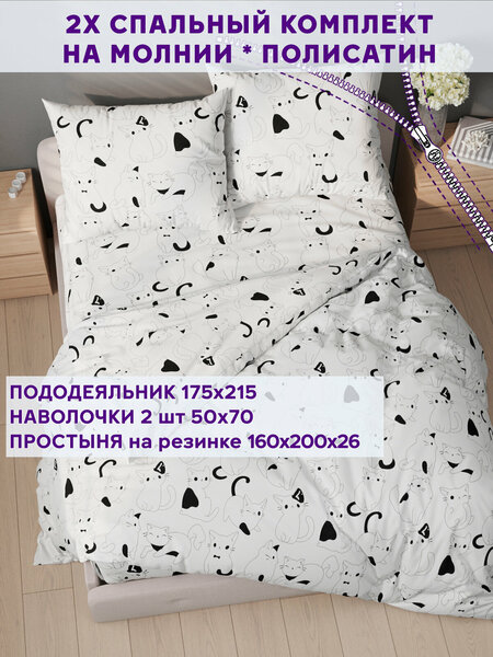 Достоинства:Не электризуется!! По размерам всё точно, сидит идеально. Мягкое, приятное на ощупь, после стирки не линяет. Очень здорово, что наволочки с замочком. Принт с котиками - ну это просто прелесть) Рисунок четкий, без косяков, ровненький. В общем, очень качественный и симпатичный комплект, мы с котом довольны 😻 Недостатки:Возможно, цена, но в любом случае он того стоит) Комментарий:Стал моим любимым комплектом постельного