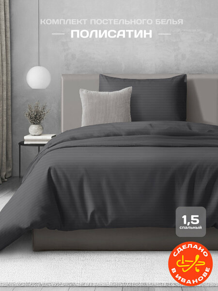 Постельное белье The Дом 1.5-спальное, Полисатин страйп, одна наволочка 50х70 см, Асфальт