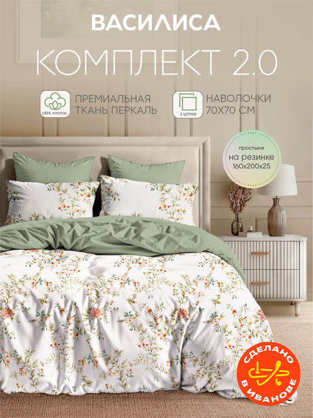 2- спальный комплект постельного белья от ивановского бренда Василиса. Материал – 100% хлопок, тип плетения – перкаль. Плотность ткани 110 г/м2. Постельное белье еще более нежное и мягкое. В двухспальный комплект постельного белья входят четыре предмета: простынь на резинке 160х200х25см-1шт; пододеяльник на молнии 175х215см+/-2см-1шт, наволочки 70x70 +/-1см-2 шт. (вид застежки - клапан 25 см). Ткань обработана по технологии WISE PRO специальным смягчителем. Благодаря инновационной обработке нового поколения она имеет идеальную, шелковистую, гладкую и струящуюся поверхность. Меньше мнется и легко гладится после стирки. Постельное белье 2-спальное сохраняет свою форму и цвет после многих стирок, поэтому будет выглядеть как новое, даже после многократного использования. Рекомендуемый температурный режим стирки 40C. Товары производства ТДЛ текстиль из Иваново – это стильные предметы для сна и отдыха. Изготовление постельного белья ООО "ТДЛ Текстиль" осуществляется в строгом соответствии с установленными стандартами и при строгом контроле качества на фабриках России и Узбекистана. Место изготовления указано на упаковке товара.