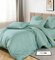 Достоинства: Насыщенный зеленый цвет, приятная на ощупь ткань. В комплекте две большие и две маленькие наволочки, одна простыня и один пододеяльник, с молнией. После стирки нитки не вылезли. Цвет не потерял яркость. Не электризуется.