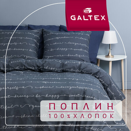 Постельное белье евро Galtex Нежность поплин Позитив темно-серый - это комплект из 100% хлопка, который сочетает в себе мягкость, практичность и стиль. Ткань поплина, из которой изготовлено белье, известна своей прочностью, устойчивостью к износу и мягкостью. Благодаря плотному переплетению нитей, белье отлично держит форму и не скатывается. Комплект включает в себя 1 пододеяльник размером 200х215 см, 1 простыню размером 215х240 см и 2 наволочки размером 70х70 см. Темно-серый цвет белья легко впишется в любой интерьер, а современный дизайн с надписями добавит изюминку в вашу спальню. Уход за постельным бельем прост: стирка при температуре до 30 градусов, глажка при температуре не выше 150 градусов и отбеливание запрещено. Выбирая постельное белье евро Galtex Нежность поплин Позитив темно-серый, вы получаете качественный, удобный и стильный комплект, который прослужит вам долгое время и подарит комфортный сон.