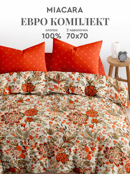 Постельное белье размера евро выполнено из бязи (100% хлопок): прочной, гладкой и мягкой ткани. Она отлично сохраняет цвет даже после множества стирок. Комплект плотностью 120 г/м2 почти не мнется и не электризуется. В спальный набор размера евро из прочной и легкой бязи входят: 2 наволочки 70х70 см, а также простынь 240х220 см и пододеяльник 220х215 см. Прочные швы и стойкие красители делают постельное белье из бязи практичной покупкой. Комплект постельного белья из 100% хлопка следует стирать на деликатном режиме (до 40 градусов). Перед первой стиркой выверните хб набор наизнанку, и не смешивайте изделия из разных видов ткани. Легкий запах ПВХ, который может присутствовать после распаковки, уходит после первой же стирки. Мы создаем крутые комплекты, ориентируясь на тренды и ваши вкусы. Красивое постельное белье на кровать евро украсит интерьер спальни. Обратите внимание на стильный дизайн комплекта оранжевого цвета с рисунком Клэр. КПБ с принтом будет красиво смотреться в спальне. Его также можно приобрести для отеля или гостиницы. Постельное белье евро отечественного производства — отличный выбор подарка для близких. Комплект можно преподнести на праздники: новоселье, свадьбу или день рождения. Он точно понравится друзьям и близким. Хлопковое постельное белье порадует тех, кто ценит качественные и красивые подарки. Постельное белье идеально подойдет как для дома и дачи, так и для отеля или гостиницы. На нем будет приятно спать всю ночь! Друзья и близкие, коллеги будут в восторге от такого милого подарка. Качественное постельное белье размера евро отечественного производства сделано в Иваново, России. Мы предлагаем интересные подарочные и интерьерные товары для вашего дома. Приятных снов! Уважаемые покупатели, благодарим за выбор КПБ от нашего бренда! Мы уделяем особое внимание качеству продукции, поэтому работаем в соответствии с общеустановленными стандартами. Высокое качество Ивановского домашнего текстиля подтверждено сертификатами, которые приложены к карточке. Поскольку постельное белье — невозвратный товар, лучше проверить его на ПВЗ до оплаты и предварительно прочесть инструкции по уходу, которые указаны на этикетках. Приятных покупок!