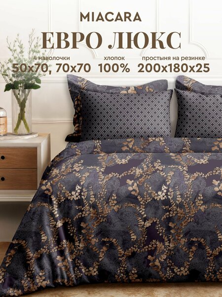 Постельное белье евро Mia Cara перкаль сочетает красоту и отменное качество. Перкаль - это 100% хлопок, особое плетение которое обеспечивает неповторимую гладкость и нежность постельного белья, приятное для прикосновения кожи. В процессе использования комплект постельного белья евро Mia Cara перкаль не появляется заломов, а все дизайны сохранят насыщенность цветом на годы, несмотря на многократность стирок. Постельное белье евро хлопок станет достойным дополнением в вашей спальне. Отлично стирается, выдерживая более сотни стирок, сохраняя размеры, цвета и рисунок. Поверхность перкаля гладкая, но матовая. Чтобы постельное белье из перкаля прослужило долгие годы, за ними нужно правильно ухаживать. Стирать постельное из перкаля следует при температуре воды от 30 до 40 градусов. При стирке Комплект постельного белья не смешивать с другими типами тканей. Запрещено использование отбеливающих средств и порошков с пометкой для белого белья. Постельное евро легкий, мягкий и одновременно прочный материал великолепно подходит для постельного белья среднего ценового сегмента, впишется в любой интерьер Вашей спальни или станет прекрасным подарком женщине, маме, подруге, девушке на любой праздник: День Рождения, 8 Марта, Новый год Постельное белье евро на резинке комплектация изделия: ▪ пододеяльник 215х220 см-1шт (без застежки) ▪ простыня на резинке (резинка по углам) - 200х180х25 см-1шт ▪ наволочки 70х70 - 2 шт; 50х70 см - 2 шт (клапан - 25 см) ▪ плотность ткани 110г/м2. ▪ Упаковка: подарочная коробка.