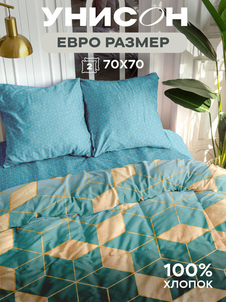 Постельное белье размера евро выполнено из бязи (100% хлопок): прочной, гладкой и мягкой ткани. Она отлично сохраняет цвет даже после множества стирок. Комплект плотностью 120 г/м2 почти не мнется и не электризуется. В спальный набор размера евро из прочной и легкой бязи входят: 2 наволочки 70х70 см, а также простынь 240х220 см и пододеяльник 220х215 см. Прочные швы и стойкие красители делают постельное белье из бязи практичной покупкой. Комплект постельного белья из 100% хлопка следует стирать на деликатном режиме (до 40 градусов). Перед первой стиркой выверните хб набор наизнанку, и не смешивайте изделия из разных видов ткани. Легкий запах ПВХ, который может присутствовать после распаковки, уходит после первой же стирки. Мы создаем крутые комплекты, ориентируясь на тренды и ваши вкусы. Красивое постельное белье на кровать евро украсит интерьер спальни. Обратите внимание на стильный праздничный дизайн Cubes комплекта с рисунком геометрия ромбы. КПБ с принтом будет красиво смотреться в спальне. Постельное белье евро отечественного производства — отличный выбор подарка для близких. Комплект можно преподнести на праздники: новоселье, свадьбу или день рождения. Он точно понравится друзьям и близким. Хлопковое постельное белье порадует тех, кто ценит качественные и красивые подарки. Постельное белье идеально подойдет как для дома и дачи, так и для отеля или гостиницы. На нем будет приятно спать всю ночь! Друзья и близкие, коллеги будут в восторге от такого милого подарка. Качественное постельное белье размера евро отечественного производства сделано в Иваново, России. Мы предлагаем интересные подарочные и интерьерные товары для вашего дома. Приятных снов! ________________________________________________________________________ Уважаемые покупатели, благодарим за выбор КПБ от нашего бренда! Мы уделяем особое внимание качеству продукции, поэтому работаем в соответствии с общеустановленными стандартами. Высокое качество Ивановского домашнего текстиля подтверждено сертификатами, которые приложены к карточке. Поскольку постельное белье — невозвратный товар, лучше проверить его на ПВЗ до оплаты и предварительно прочесть инструкции по уходу, которые указаны на этикетках. Приятных покупок!