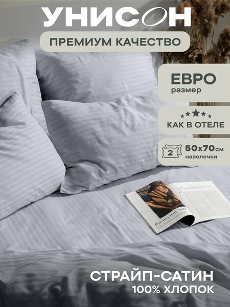 Постельное белье евро Унисон выполнено из ткани страйп сатин. Постельное белье Сатин премиум - это высококачественный сатин из длинноволокнистого хлопка. Для изготовления ткани используется гребенная пряжа двойного кручения, которая обеспечивает глянцевый блеск и прочность. Комплект постельного белья евро страйп сатин эта коллекция создана из модных и трендовых дизайнов премиального уровня для стильных и изысканных интерьеров как в современном, так и в классическом стиле для взыскательных клиентов. Страйп сатин постельное белье Унисон впишется в любой интерьер Вашей спальни или станет прекрасным подарком женщине, маме, подруге, девушке на любой праздник: День Рождения, 8 Марта, Новый год, на свадьбу. Постельное бельё комплектация изделия: