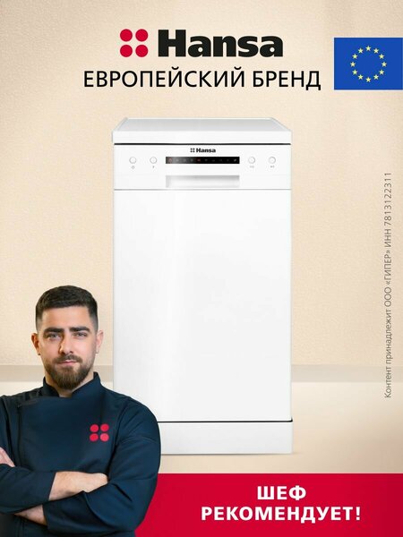 Отдельностоящая посудомоечная машина Hansa ZWM416WEH — компактная и вместительная! Узкая посудомоечная машинка выполнена в классическом белом цвете и подойдёт к интерьеру любого дома. Её компактные размеры обусловлены шириной всего 45 см, а возможность установить посудомойку под столешницу делает её отличным вариантом для маленьких кухонь. Модель оснащена электронным управлением, что добавляет удобство в её использование. Крупная бытовая техника способна вымыть 10 комплектов посуды, а 6 программ обеспечат оптимальный вариант подходящей мойки. Режим «стекло» подходит для стеклянных стаканов, тарелок, фужеров и прочего, гарантируя не только бережное обращение, но и отсутствие разводов. "90 минут" — это великолепный результат за 1,5 часа, а интенсивная программа с легкостью расправится даже с самыми сложными загрязнениями. Экономичный режим больше подходит если нужно вымыть посуду с низким уровнем загрязнений, не расходуя много воды, а стандартный — для среднего уровня загрязнений, в том числе для тарелок, кружек и столовых приборов. «Замачивание» — мини программа без сушки, благодаря чему содержимое напольной пмм долго остаётся влажным. После цикла раздастся звуковой сигнал, оповещая о том, что работа закончена. Система Aquastop гарантирует безопасность от протечек за счёт электромагнитного клапана в заливном шланге. Наличие 3 корзины Maxi Space заменяет обычный лоток для столовых приборов и легко регулируется, освобождая место для кухонной утвари в нижнем отсеке. Напольная модель оснащена индикацией наличия ополаскивателя и соли, а также для мытья можно использовать средства 3 в 1 в виде таблеток. Класс энергоэффективности А++ и опция половинной загрузки помогут больше сэкономить электричество и воду. Пусть посуда сверкает чистотой вместе с Hansa!
