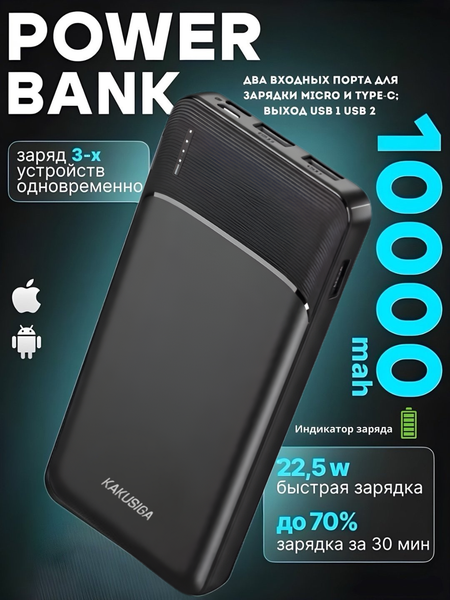 Повербанк 10000 мАч — надёжный помощник для зарядки телефона и других устройств в любое время! На корпусе отображается оставшийся заряд — не нужно догадываться, сколько энергии осталось. Компактный и лёгкий дизайн — идеально подходит для путешествий, работы, учёбы и повседневного использования. Легко помещается в сумку или карман. Совместим с телефонами, планшетами, наушниками, смарт-часами и другими устройствами. Универсальный внешний аккумулятор — незаменимая вещь для каждого пользователя!