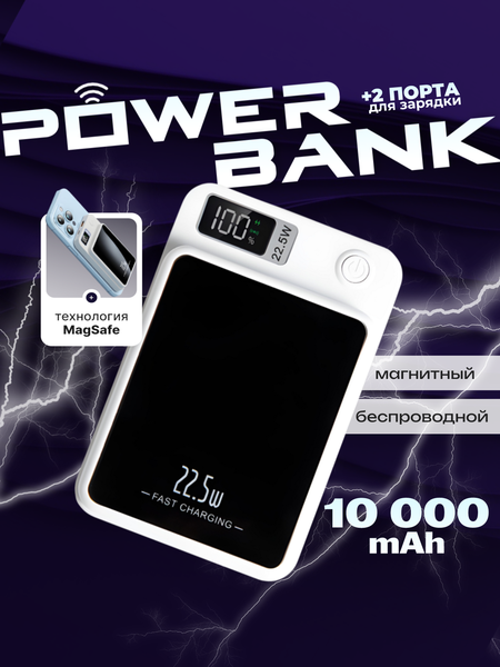 Портативный PowerBank 10 000 mAh с функцией MagSafe и разъемами USB - A и Type - C - это отличный внешний аккумулятор для быстрой зарядке мобильного телефона любого бренда. Аксессуар оснащен прочным пластиковым корпусом черного или белого цвета с индикатором заряда, мощной литий-ионной батареей и защитой от перегрева и короткого замыкания. Он имеет компактный размер, небольшой вес, что позволяет с легкостью носить девайс с собой и придает ему универсальность. Павербанк идеально подходит для зарядки смартфона и сотового с телефона, планшета, беспородных наушников и умных часов, фитнес-браслета, гарнитуры и других устройств в дороге или поездке благодаря двум гнездам и MagSafe - функции. Компактный и небольшой аксессуар с LED дисплеем и возможностью беспородной зарядке станет вашим незаменимым помощником для быстрой и надежной подзарядке предметов электроники и цифровой технике!