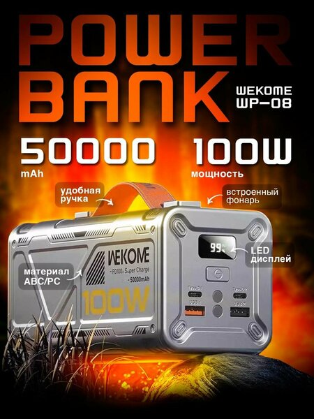 Приветствуем вас с новым повербанком Wekome WP-08, который станет незаменимым помощником в путешествиях, на работе или в повседневной жизни. Материал корпуса - комбинация ABS пластика и поликарбоната, что обеспечивает прочность и долговечность устройства. Литий-полимерная батарея емкостью 50000 мАч обеспечивает длительное время работы, а номинальная емкость составляет 26000 мАч. Это позволяет заряжать ваши устройства в течение длительного времени без необходимости постоянной подзарядки. Устройство оснащено двумя типами портов: Type-C и USB. Type-C1 и Type-C2 поддерживают различные напряжения и токи, включая 20V-5A, 12V-1.5A, 9V-2A и 5V-3A с максимальной мощностью 100 Вт и 60 Вт соответственно. Выходные порты USB и Type-C также поддерживают различные напряжения и токи, включая 5V-4.5A, 5V-3A, 9V-2A и 12V-1.5A с максимальной мощностью 22,5 Вт и 100 Вт. Общая мощность аккумулятора составляет 185 Втч. Светодиодный цифровой дисплей на корпусе позволяет контролировать состояние аккумулятора и уровень заряда. Рабочая температура устройства составляет 10-30 °C, что делает его удобным для использования в различных условиях. Размеры устройства составляют 80 * 72 * 150 мм, а вес - 1130 г. Wekome WP-08 сертифицирован по стандартам FCC, CE и ROHS, что подтверждает его качество и безопасность использования. Технические характеристики: