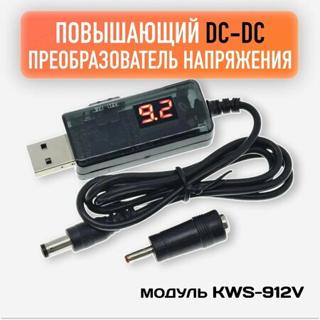 Универсальный повышающий DC-DC преобразователь напряжения USB представляет собой надежное решение для повышения напряжения от 5 В до 9 В или 12 В. Этот модуль, известный как KWS-912V, отлично подойдет для тех, кто нуждается в преобразовании постоянного тока, обеспечивая стабильную работу при различных нагрузках. Благодаря преобразователю DC-DC модуль KWS-912V с индикатором отображения напряжения можно питать устройства требующие 9 или 12В напряжения от USB порта (например роутер, точку доступа, GPON и прочие сетевые устройства от Power Bank). Характеристики: 1)Входное напряжение 5В 2)Выходное напряжение 9В / 12В 3)Максимальный ток выхода:1 А (9 В), 0.8 А (12 В); 4)Мощность 10 Вт 5)Топология Boost 6)Интерфейс USB Type-A, DC 5.5*2.1 7)Длина шнура 0.9 м.