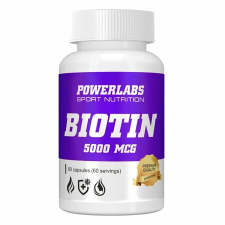 PowerLabs Биотин 5 000 мкг Витамины для волос Бад biotin - является одним из самых действенных препаратов для кожи, волос и ногтей. Биотин 5000 помогает стимулировать выработку собственного коллагена волос. Регулярный прием капсул для роста волос делает волосы более объемными и блестящими, помогает предотвратить сечение по длине и на кончиках. Витамины для волос усиливают их рост, являются лечением или профилактикой сезонного выпадения волос. Функции биотина в организме человека: