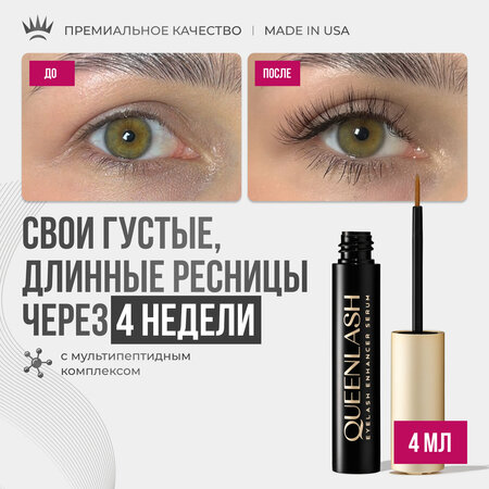 Премиум сыворотка для роста ресниц и бровей QUEENLASH 4ml, Квинлаш