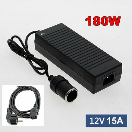 Пиковая мощность 180* Ватт преобразователь переменного тока (инвертор) из 220В в 12В 15А автомобильного прикуривателя адаптер питания. Инвертор для автомобильной электроники Особенности: Преобразование 220 В переменного тока из розетки в 12 В DC для автомобильного зарядного устройства, автомобильного компрессора, автомобильного пылесоса, автомобильного холодильника, автомобильного регистратора, автомобильной накидки на кресла с подогревом и д. р. приборов для авто. — Очень удобный и простой в использовании — Макс. мощность: 180* Вт, позволяет подключать практически все самые энергоёмкие устройства (холодильники, грелки, фены) — Вход: 220 В 50 Гц — Выход: DC 12 В 15А — Цвет: черный — Размер: 14.4*6.5*4.5 см — Вес: 570 г *Указана пиковая, кратковременная, мощность преобразователя! При выборе мощности рекомендуется 20% запас относительно подключаемого оборудования, для блока 120Вт использовать нагрузку не более 90-100Вт, для блока 180Вт нагрузку не более 145-150Вт и т. д. Если Использование на продолжительное время (например авто холодильник или компрессор) рекомендуется запас мощности 30-40% - это позволит избежать перегрева и выхода из строя преобразователя.