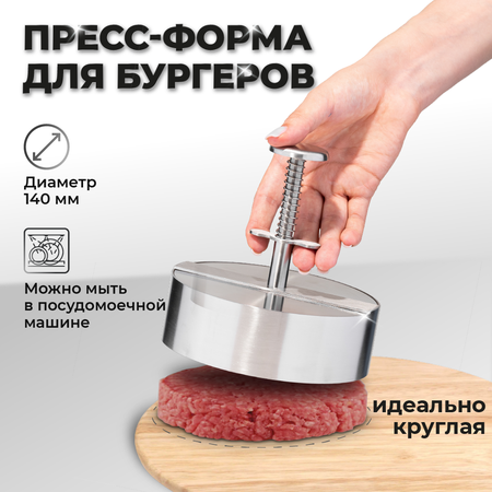 Пресс для котлет — это удобный инструмент, который помогает формировать идеально ровные и одинаковые по размеру котлеты. Котлетница особенно полезна, если вы хотите, чтобы все котлеты были одинаковой формы и размера, что не только улучшает их внешний вид, но и обеспечивает равномерное приготовление. Для приготовления котлеты необходимо разделить фарш на небольшие порции и поместить его в форму для бургеров. Затем, с помощью пресса для бургеров, надавить на массу, чтобы сформировать котлету. Благодаря пресс-форме для котлет и бургеров, котлета приобретает идеальную форму и не разваливается во время жарки или запекания.