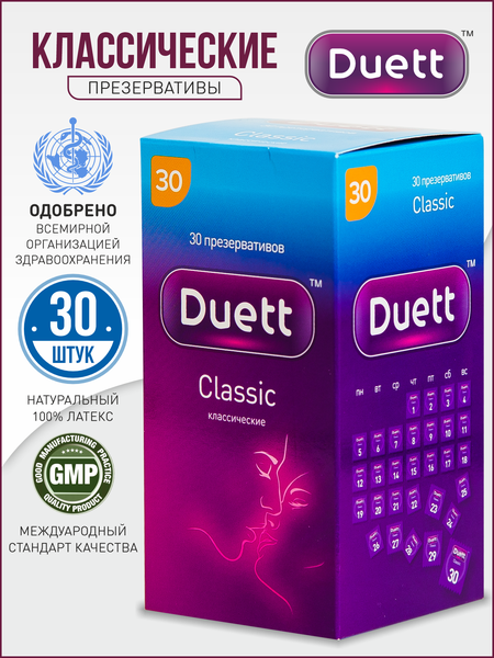 Презервативы Duett Classic: Надежная Защита для Вашей Интимной Жизни! Откройте для себя презервативы Duett с гель-смазкой - классическое решение для безопасного и приятного секса. Эти высококачественные средства контрацепции обеспечивают надежную защиту от нежелательной беременности и венерических заболеваний, позволяя вам наслаждаться интимной близостью без забот. Премиальное Качество и Комфорт: Презервативы Duett изготовлены из премиального каучукового латекса, который обеспечивает прочность и надежность. Классическая структура создает комфортное ощущение, позволяя вам чувствовать близость. Обильная Гель-Смазка для удовольствия: Встроенная смазка, изготовленная по немецким стандартам, уменьшает трение и обеспечивает гладкое скольжение. Это особенно важно для длительных и приятных интимных моментов. Презервативы Duett идеально подходят для вагинального, анального и орального секса, а также для использования с секс-игрушками. Анатомическая Форма для Идеального Прилегания: Уникальная анатомическая форма презервативов Duett обеспечивает идеальное прилегание, что способствует увеличению удовлетворения как для мужчин, так и для женщин. Вы сможете наслаждаться каждым моментом, не беспокоясь о дискомфорте. Размеры и Упаковка для Удобства: Каждый презерватив имеет длину 180 мм (± 2 мм) и ширину 53 мм (± 2 мм), что делает их подходящими для большинства мужчин. Безопасность и Качество Продукта: Презервативы Duett проходят строгий контроль качества, что гарантирует их надежность и безопасность. Помните, что ни один контрацептив не дает 100% гарантии, но использование презервативов Duett значительно увеличивает вашу защиту. Закажите Презервативы Duett Прямо Сейчас! Не упустите возможность сделать вашу интимную жизнь более безопасной и приятной. Добавьте презервативы Duett в свою корзину и наслаждайтесь каждым моментом! 18+ Количество в упаковке: 30 штук