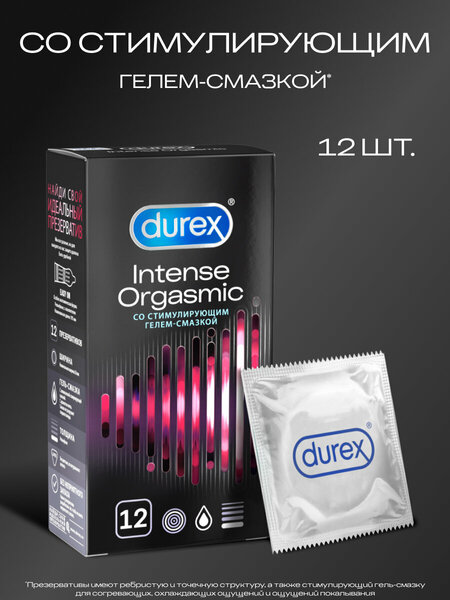 Презервативы Durex Intense Orgasmic (Дюрекс Интенс Оргазмик) со стимулирующей смазкой, точками и ребрами, которые могут усилить ощущения. Ребристая и точечная структура вместе со стимулирующей смазкой увеличивают ее шансы на оргазм и доставляют ему дополнительное удовольствие. Благодаря специальной гель-смазке вы можете почувствовать охлаждение и приятное покалывание. Доставьте друг другу больше удовольствия. • Рельефные, с накопителем; • С силиконовой стимулирующей смазкой; • Анатомической формы «Easy-on»; • Бесцветные, из натурального латекса; • С ароматом мяты; • Длина - 195 мм, ширина - 56 мм. Дерматологически протестированы. 100% проверены электроникой. Ни один из методов контрацепции не может гарантировать 100% защиты от нежелательной беременности, ВИЧ или иных заболеваний, передающихся половым путем.