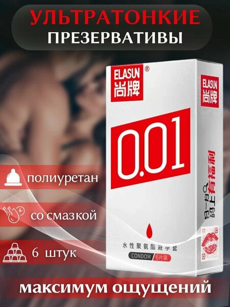 Презервативы мужские Elasun - этo давно зарeкомeндовaвший ceбя брeнд. Производятся из полиуретана и тестируются электроникой. Высококачественные презервативы ультратонкие Elasun 0,01 мм. обладают отличной теплопроводностью и гладкой поверхностью, в результате чего тепло партнера передается так, как если бы презика вообще не было. Вы и ваш партнёр практически их не почувствуете. Ультратонкие презервативы Elasun не имеют запаха. Классический дизайн, много смазки. Надежные. Контрацептивы, изготовленные из полиуретана гипоаллергенны, способны при правильном использовании защитить от нежелательной беременности, а также от половых инфекций. Номинальная ширина: 52 +- 2 мм. Номинальная длина: 160 + мм. Смазка: лубрикант на водной основе. Цвет: прозрачный. Текстура: гладкая. Упаковка: набор 6 шт
