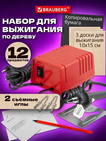 Прибор для выжигания по дереву "АЖУР" BRAUBERG – идеальное решение для творческих натур и отличный подарок сыну на новый год. Этот выжигатель по дереву позволяет создавать уникальные рисунки на различных материалах, таких как ольха и липа, а также фанера. Набор для выжигания включает все необходимое: прибор, 3 доски для выжигания, 2 иглы для выжигания, шаблоны, копировочную бумагу и карандаш. С помощью паяльного набора "АЖУР" вы сможете развивать творческий потенциал детей, приучая их к аккуратности и усидчивости. Выжигание – это не только увлекательное хобби, но и возможность создать оригинальные украшения для дома или подарки для родных и друзей. Подходит для мальчиков и их родителей, этот набор для выжигания станет отличным способом провести время вместе, развивая фантазию и эстетический вкус. Начните свое творческое путешествие с выжигателем "АЖУР"! • Тип товара: прибор для выжигания. • Комплектация: заготовки, инструкция, копировальная бумага, насадка для выжигания по дереву. • Формат: Ажур +все для выжигания. • Количество досок с рисунком: 0 шт. • Количество чистых досок: 3 шт. • Количество насадок к выжигателю: 2 шт. • Материал заготовок: фанера. • Возрастная группа от: 8. • Длина: 10.8 см. • Ширина: 8 см. • Толщина: 5.9 мм. • Упаковка: картонная коробка. • Гарантия: 24 мес. • Артикул производителя: 881029.