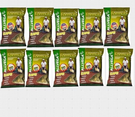 Прикормка для рыбалки ALLVEGA Formula Карп слива, карп клубника 10 пачек по 0.9 кг