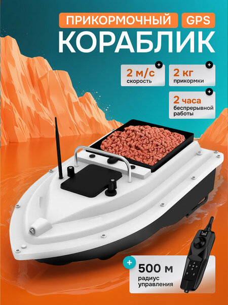 Прикормочный кораблик New Wave D26 с GPS, АКБ 5200mah будет полезен для удобного прикармливания рыбы. С его помощью рыболовы могут значительно упростить процесс доставки прикормки на нужное место, что увеличивает шансы на успешный улов. С максимальной скоростью в 2 метра в секунду, этот корабль способен быстро доставлять прикормку в заранее выбранные места, что значительно увеличивает шансы на удачный улов. Батарейки для пульта не входят в комплектацию. Одной из ключевых особенностей лодки на пульте управления является его система GPS, которая позволяет задавать две точки — одну для начальной позиции и одну для целевой. Это обеспечивает точность в навигации и позволяет рыболову легко возвращаться к местам прикармливания, даже если они находятся на значительном расстоянии. Грузоподъемность модели кораблика на аккумуляторе составляет около 2 килограммов, что позволяет использовать разнообразные приманки и прикормки. Встроенный LiPo-аккумулятор емкостью 7,4 В и 5200 мАч обеспечивает работу устройства на протяжении примерно двух часов. Катер на дистанционном радиоуправлении управляется на расстоянии до 500 метров, что делает его идеальным выбором для больших водоемов. Двойные двигатели 390A обеспечивают отличную маневренность, а радиус поворота двигателя составляет всего 0,8-1,0 метра. Это позволяет кораблику легко справляться с различными условиями на воде и уверенно двигаться даже в условиях небольших волн. Что касается устойчивости к погодным условиям, корабль на батарейках демонстрирует хорошую производительность при волнении до 4-5 уровней. Характеристики: Материал: ABS-пластик Скорость: 2 М/ с GPS (2 точки): 1 шт. целевой точки и 1 шт. начальной точки Грузоподъемность приманки: Около 2 кг Размер загрузочного бункера: 16,7 * 14,7 * 5 см Аккумулятор для лодки: Встроенный LiPo-аккумулятор емкостью 7,4 В 5200 мАч Батарея пульта: 4 * 1,5 В батарейки типа АА (не входят в комплект) Время работы: Около 2 часов Управление: До 500 м Двигатель: Двойные двигатели 390A, радиус поворота двигателя 0,8-1,0 м Сопротивление волне: Около 4-5 уровней Вес: 1.75 кг Размер: 48,0 х 26,40 х 16,0 см