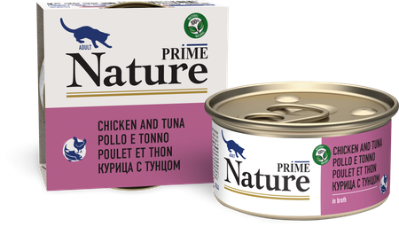 Prime Nature консервированный корм для кошек, курица с тунцом в бульоне , 85 гр. Prime Nature – 100% натуральная линейка влажных консервиронанных кормов приготовленная на пару из свежих и высококачественных ингредиентов. Супер-премиум корма для взрослых кошек и котят, в составе которых волокна (филе) мяса и рыбы, отобранные вручную. Рыба выловлена в открытом море, курица, выращенная без гормонов. Без ГМО, искусственных красителей, стимуляторов аппетита и ароматизаторов. Prime Nature производится в Таиланде. Разнообразие вкусов, рецептов и способов приготовления позволяет выбрать то, что наверняка оценят Ваши питомцы. Prime Nature дополнительное питание для котят любой породы — натуральное от природы. Состав: куриное филе 34,5%, тунец 26%, рис 4%, гуаровая камедь 0,1%. Набор ассорти PRIME Nature консервы корм для кошек ассорти 6 баночек разных вкусов и 12 банок разных вкусов. Комплектация: консервы (в железной банке) - 1 шт, 6 штук, 12 шт, 18 шт, 24 шт для собак и кошек. Страна производитель Таиланд.