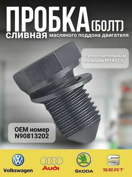 Пробка сливная (болт) масляного поддона двигателя с уплотнительным кольцом – это качественный компонент, предназначенный для автомобилей концерна VAG, включая марки Audi, Seat, Skoda и Volkswagen. Применение данной пробки обеспечит надежное и безопасное сливы масла, предотвращая возможные утечки и гарантируя максимальную защиту вашего двигателя.