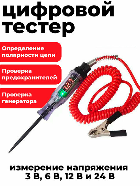 Пробник автомобильный с цифровым индикатором напряжения – незаменимый инструмент для каждого автолюбителя и профессионала в сфере обслуживания автомобилей. Он предназначен для быстрого и точного измерения напряжения в электрической системе вашего автомобиля. Модель поддерживает диапазон напряжений от 6 до 24 вольт, что делает его универсальным для легковых и грузовых автомобилей, мотоциклов и другой техники с аналогичными параметрами.