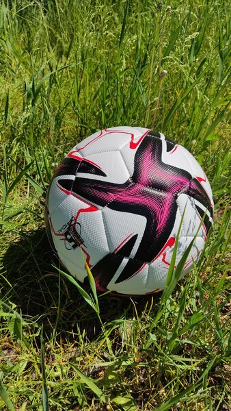 Прочный футбольный мяч с мягким нескользящим покрытием. Покрытие имеет толщину 2-3 мм, под ним уже упругая камера. Благодаря такому покрытию мяч не скользит по бутсу и кроссовку при ударе, и при этом отлично летит. Мяч имеет звездный черно-розовый рисунок, который придает ему уникальный и стильный вид. Этот рисунок не только украшает мяч, но и делает его более заметным на поле, что важно для точного и быстрого паса. Особенностью этого мяча является нескользящее покрытие. Это обеспечивает отличное сцепление с руками, что позволяет игрокам контролировать мяч даже в самых сложных игровых ситуациях. Благодаря этому покрытию, мяч не будет выскальзывать из рук даже при интенсивных тренировках или играх. Мяч соответствует официальному весу и размеру, что гарантирует его надежность и долговечность. В целом, этот футбольный мяч - это отличный выбор для тех, кто любит футбол, чеканку и игры с красивым мячом.