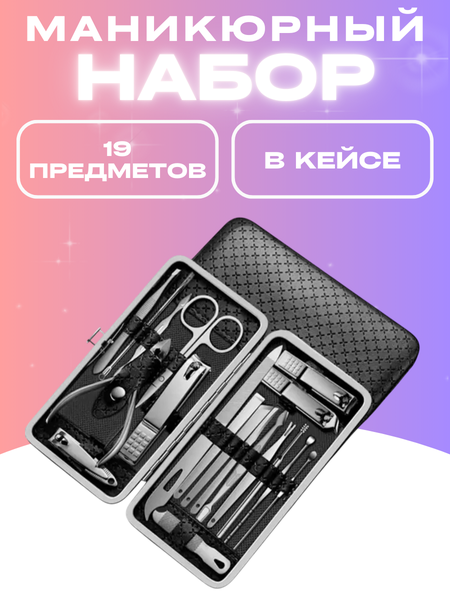 Набор для маникюра, который всегда с собой Представляем вам уникальный набор для маникюра, который станет вашим верным спутником в любой поездке или на отдыхе. Он включает в себя все необходимое для ухода за ногтями на руках и ногах, а также за кожей стоп и лица. В этот стильный и компактный набор входят инструменты для удаления кутикулы, обработки стоп и даже для ухода за кожей лица. Этот набор станет прекрасным подарком для любого, независимо от пола и возраста. Он легко помещается в любой сумке, что делает его идеальным для путешествий и приключений. Стильный дизайн будет радовать глаз во время использования. С помощью инструментов из этого набора вы сможете легко удалить ороговевшую кожу и решить проблему вросших ногтей. Он поможет вам поддерживать руки и ноги в ухоженном виде, даже если вы не используете аппарат для маникюра. Этот набор идеально подходит и для мужчин, так как все инструменты подходят для обработки мужских ногтей. В набор входят 19 профессиональных инструментов, которые обеспечат салонный уровень качества. 4 книпсера для ногтей 1 триммер для удаления заусенцев 1 лопатка для маникюра 1 пушер для кутикулы 2 пилочки для ногтей 1 кусачки для кутикулы и маникюра 3 ножа-скребка для педикюра и удаления огрубевшей кожи стоп 1 маникюрные ножницы для ногтей 1 пинцет для бровей 1 инструмент для удаления ушной серы 2 лопатки для чистки ушей 1 инструмент для удаления чёрных точек и прыщей Чехол из экокожи с надёжной металлической застёжкой завершает этот великолепный набор. Внутри чехла предусмотрены крепления для инструментов, что поможет поддерживать порядок и порядок в вашем маникюрном арсенале.
